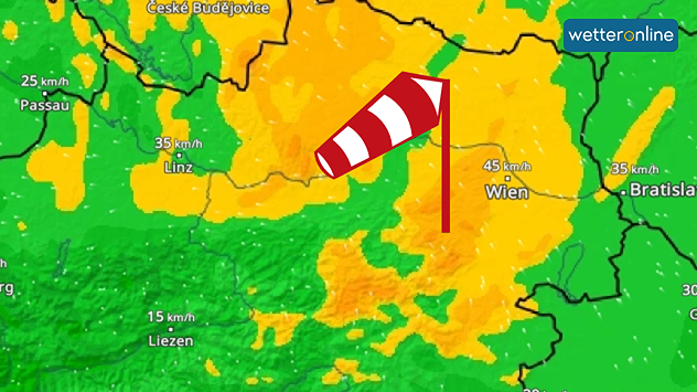Im Donauraum dreht der Wind auf Südost und legt merklich zu. Etwa in Wien werden Böen bis 50 Kilometer pro Stunde erreicht.
